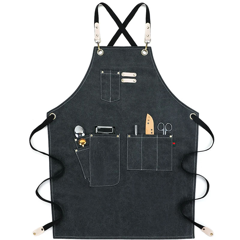Hommes en gros personnalisé coton toile bavoir sans manches tablier de travail imperméable réutilisable serveur uniforme outil poches réglable