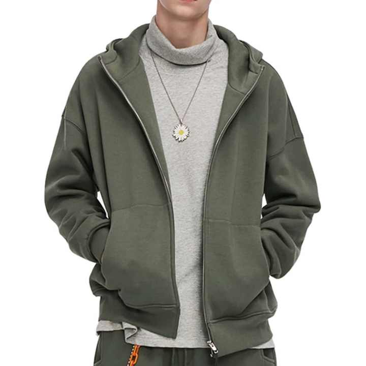 Nom du produit:Sweat à capuche zippé pour homme, coupe-vent, épaules tombantes