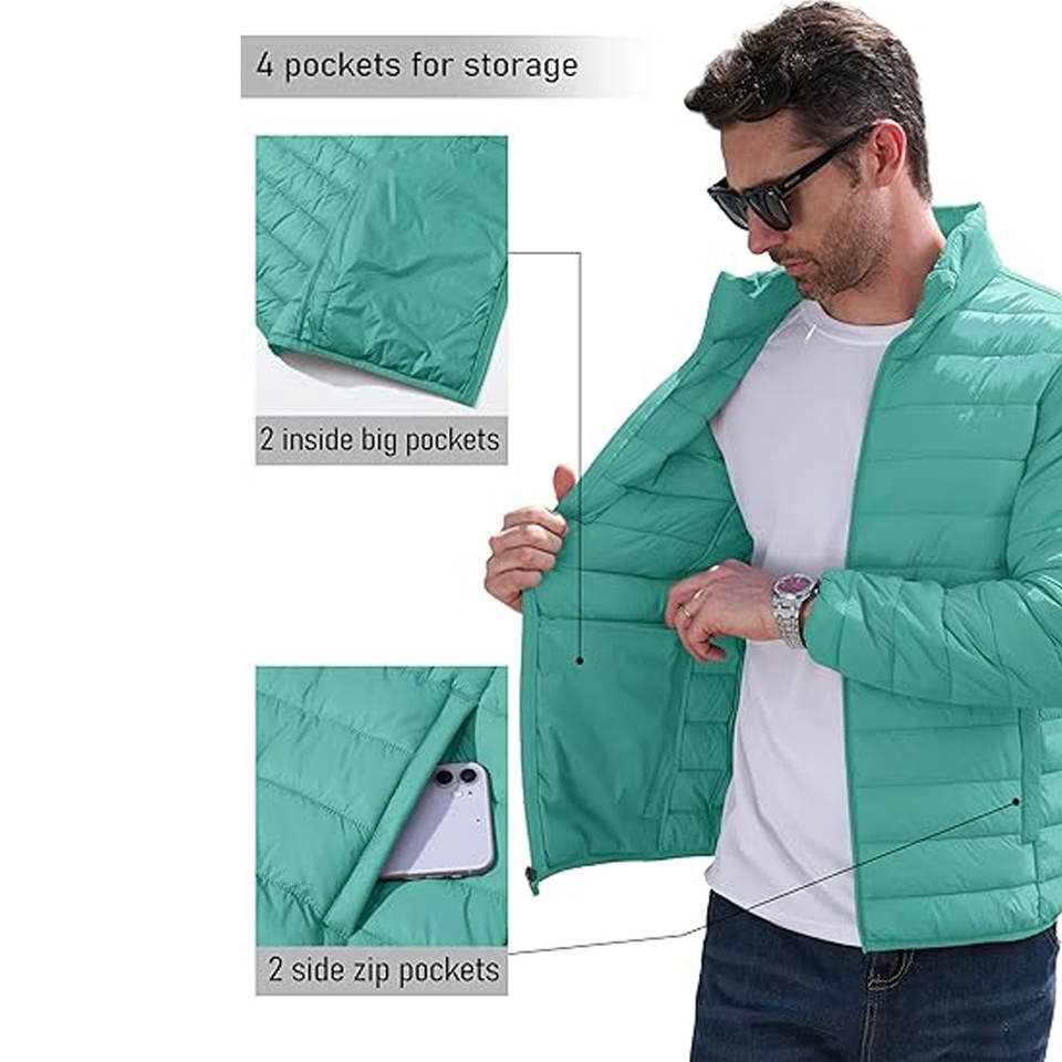 Veste matelassée coupe-vent et hydrofuge pour homme, légère et isolante, avec coque en nylon respirant et col montant