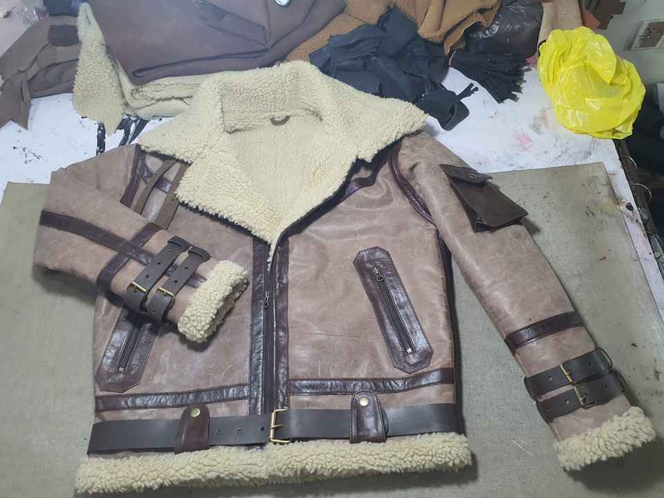 Men's Winter Aviator Pilot B3 RAF WW Bomber Flight Jacket Stand Collar Light Shearling Leather Jacket Fur Lining Fabric Material