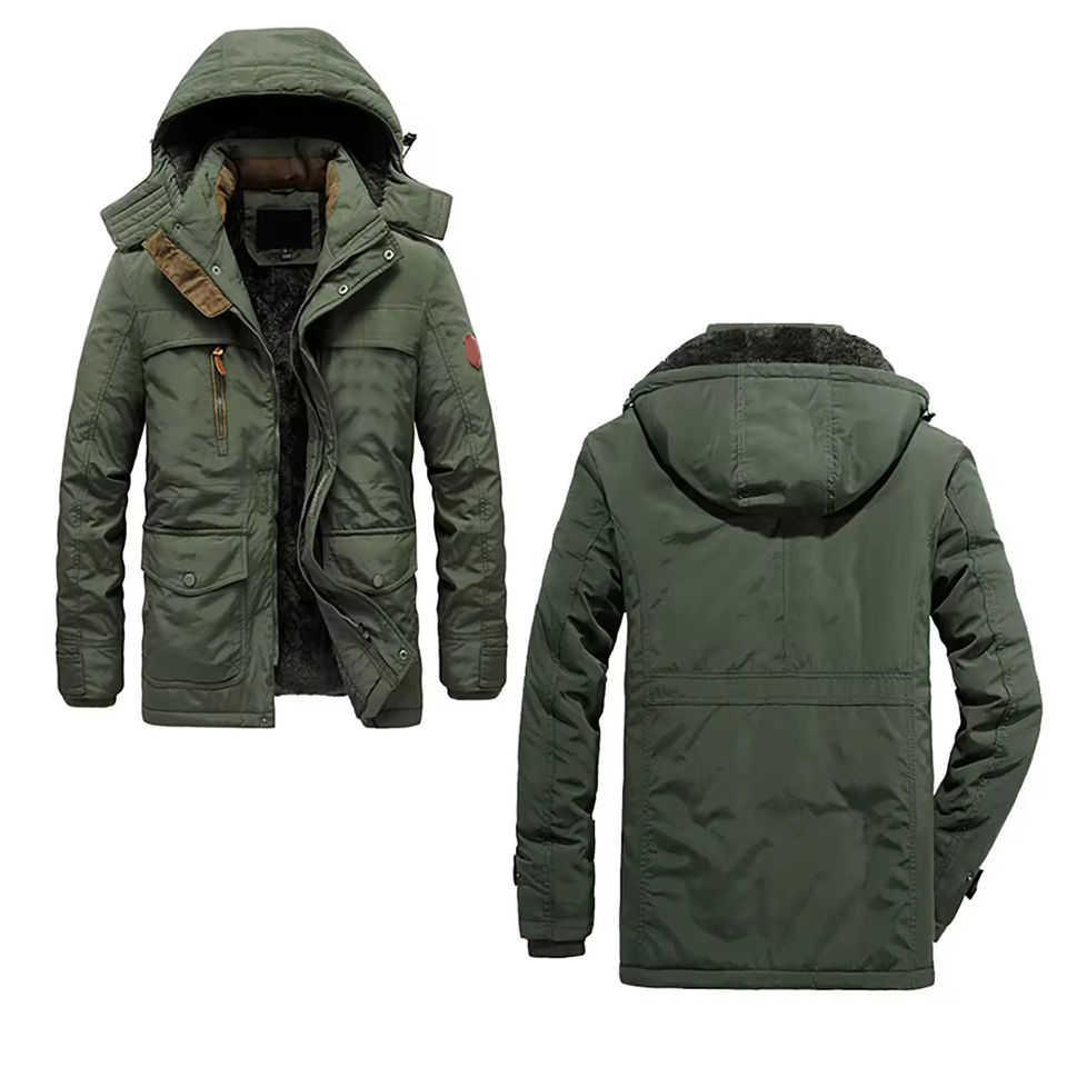 Men's Winter Coats & Jackets Waterproof Breathable Canvas Stand Collar Front Hooded Insulated Puffy Thick Parka