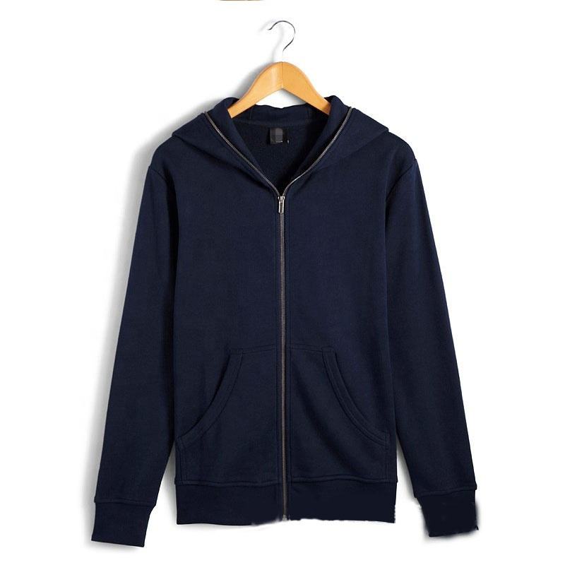 Men's Winter Cotton Full Sleeve Zip Up Hoodie with Customized Logo Hot Sale Embroidered Fleece Fabric Long Zipper Hooded Jacket