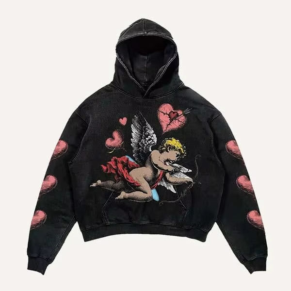 Sweat à capuche thermique surdimensionné brodé pour homme, motif ange Cupidon 3D multi-design, poches kangourou, patchs, collations