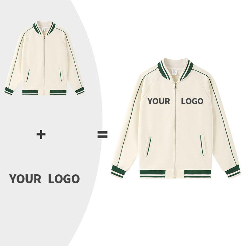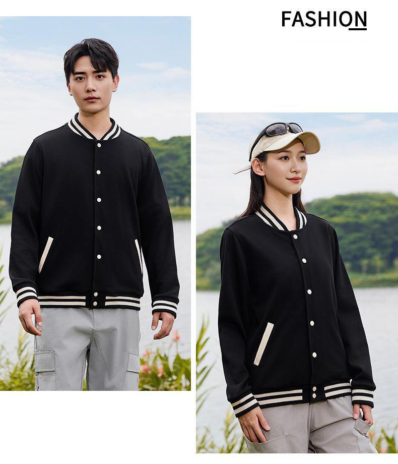 Veste mode d'hiver pour hommes couleurs contrastées broderie logo imprimé style universitaire polyester coton baseball coupe-vent avant