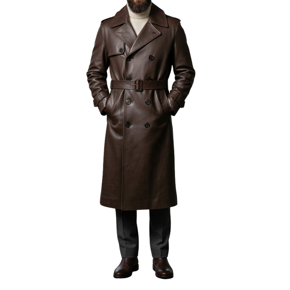 Manteau long d'hiver en cuir de haute qualité pour hommes nouveau Trench élégant avec le meilleur matériel prix de gros manteau long en cuir véritable pour hommes
