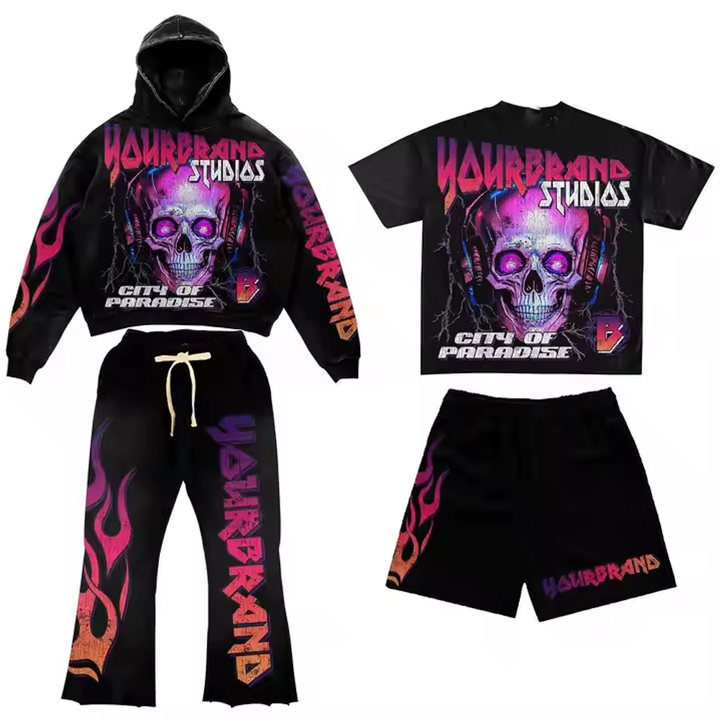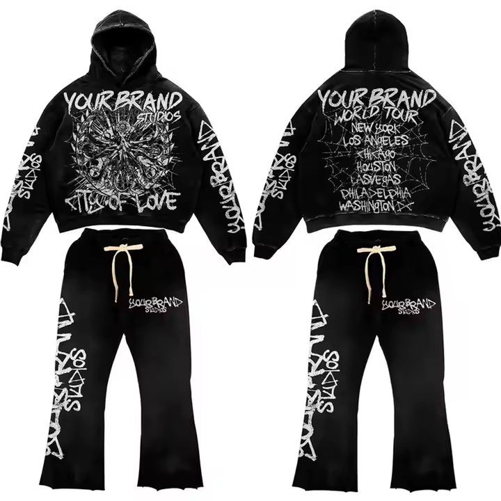 Ensemble de survêtement décontracté pour homme avec capuche, broderie et design réfléchissant, couleurs/tailles personnalisables, 100 % coton léger