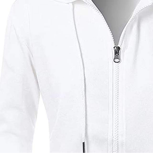 Men's Winter Hoodies Sweatshirts White Long Sleeve Low MOQ 100% Cotton Fleece Breathable Zipper Casual Solid Knitted Front Logo