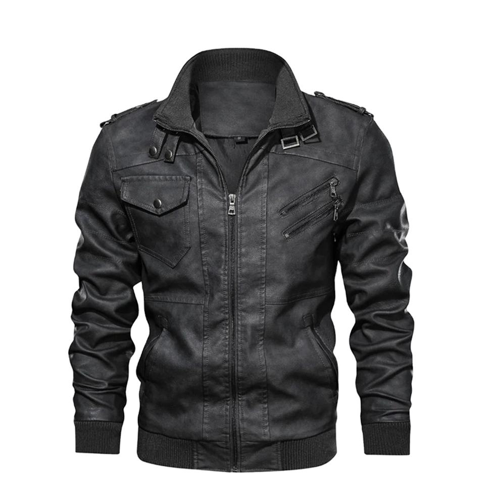 Veste en cuir d'hiver pour homme, couleur unie, style décontracté polyvalent avec col épais en fourrure, article neuf de haute qualité, teinture unie