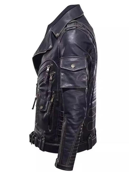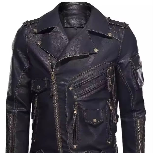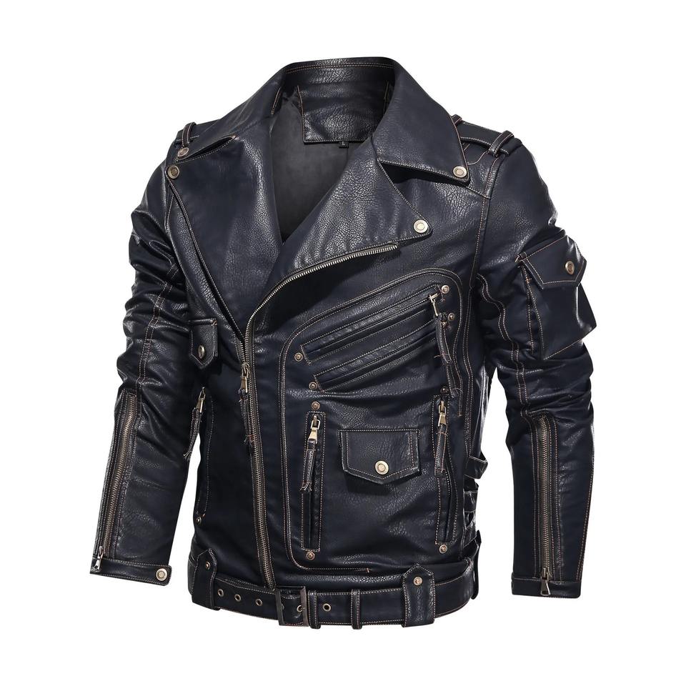 Veste de moto d'hiver pour hommes en cuir PU à la mode avec poches zippées cool vêtements d'hiver imperméables