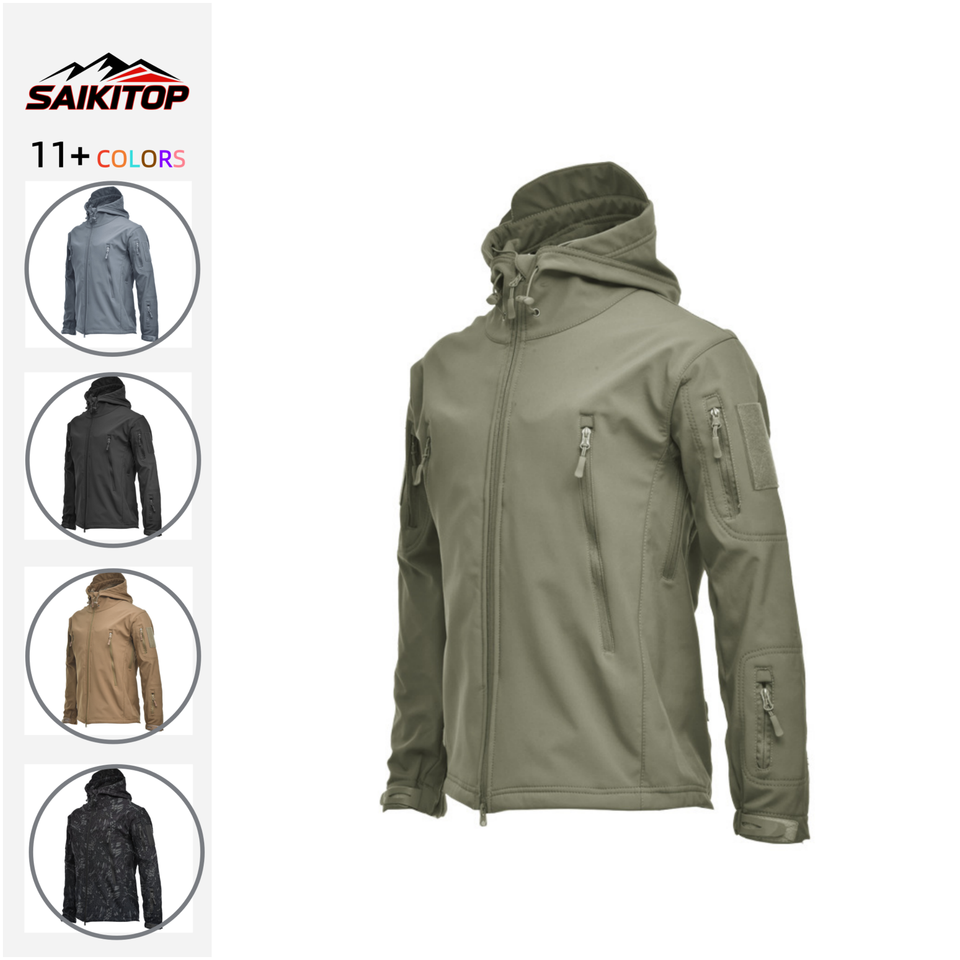 Veste d'hiver pour homme en softshell effet peau de requin, veste polaire à capuche, imperméable et coupe-vent, veste de randonnée chaude