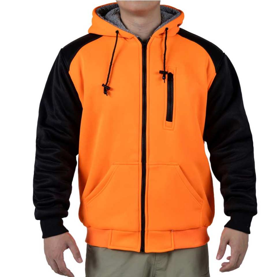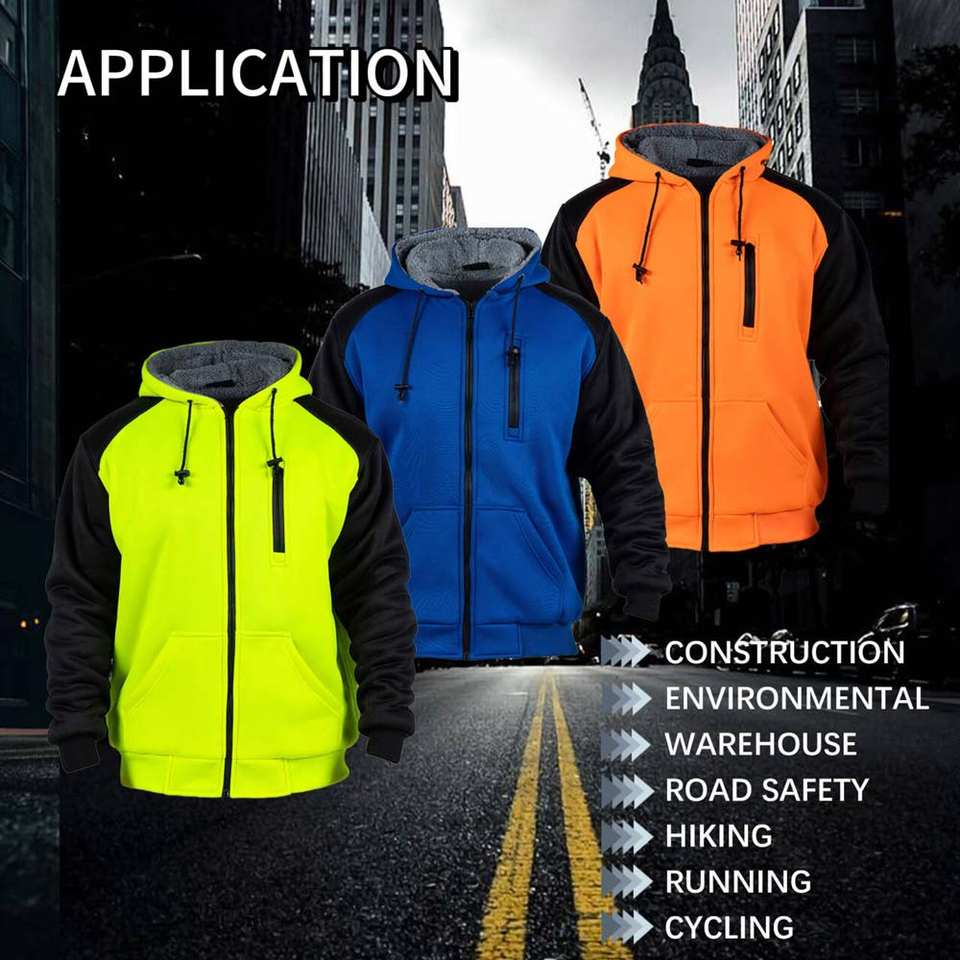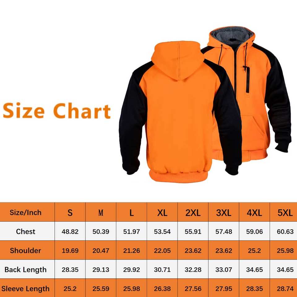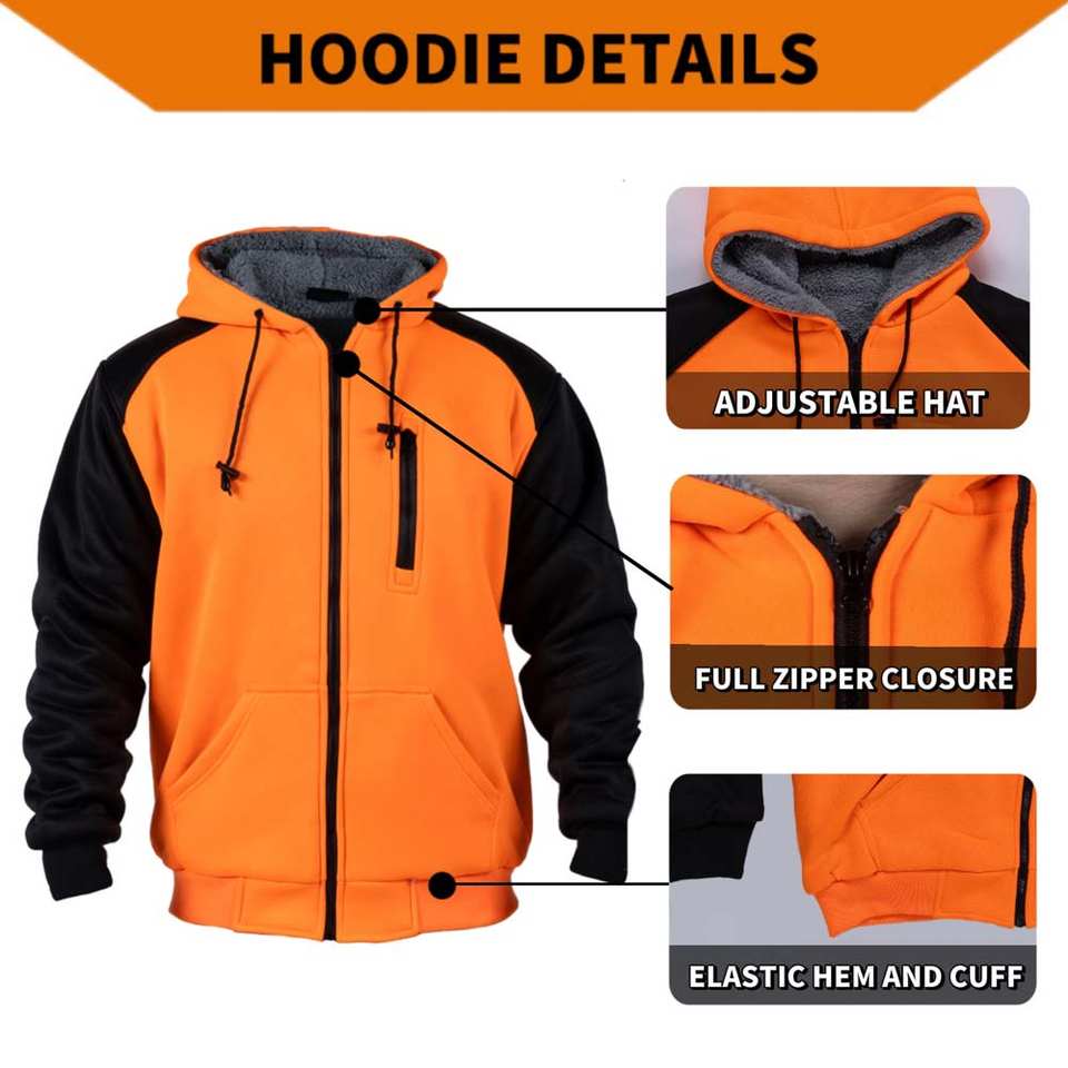 Men's Winter Sherpa Fleece Construction Sweatshirt Hooded with Safety Zipper Solid Pattern Work Hoodie