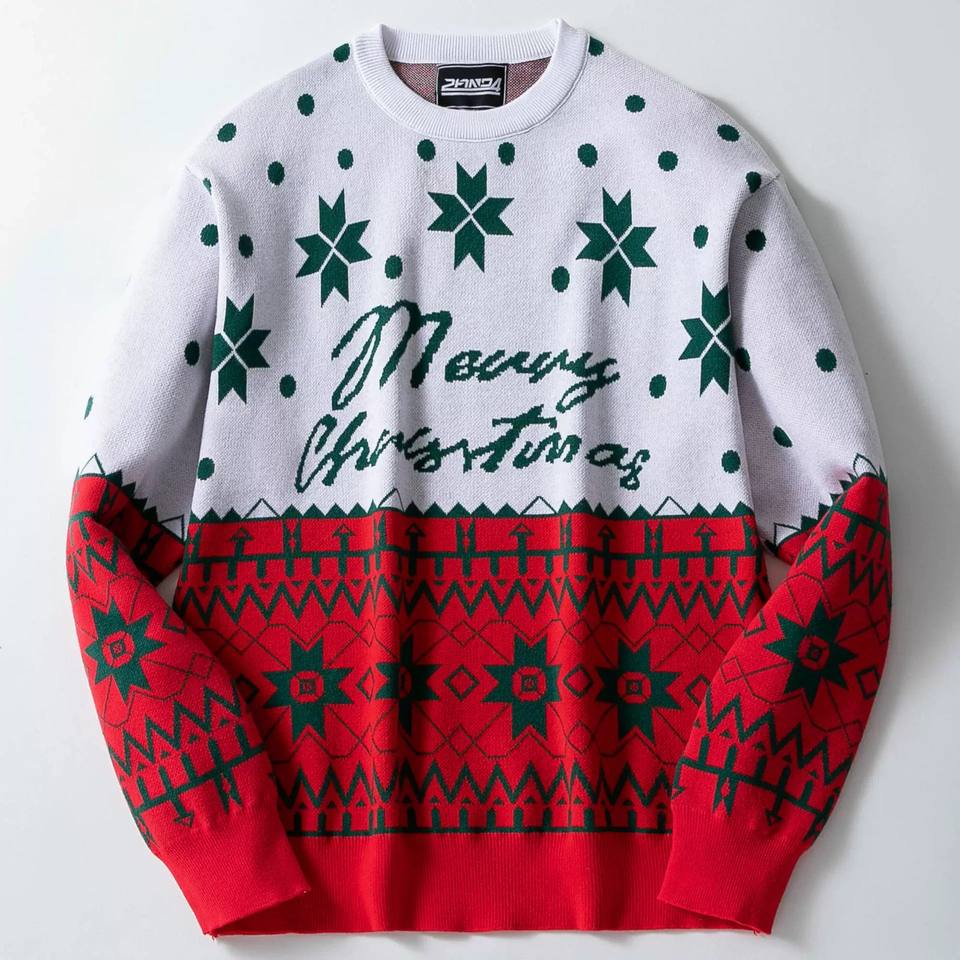 Pull Jacquard à motif de neige d'hiver pour hommes, tissage tricoté de Noël, épaules tombantes lâches, manches longues, design fin