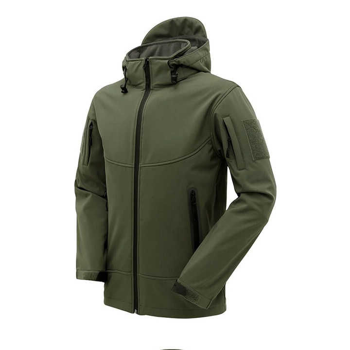 Vestes softshell pour hommes et femmes, à capuche, coupe-vent, imperméables, chaudes, doublées polaire, col montant, logo frontal, style urbain