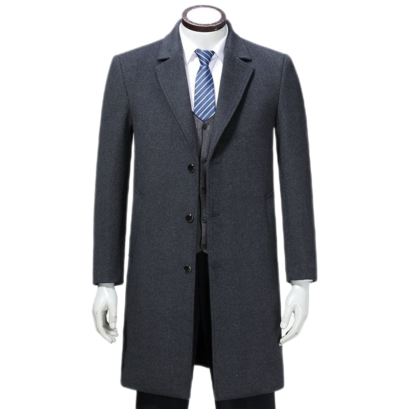 Manteau trench-coat mi-long en mélange de laine pour homme, col à revers, simple boutonnage, style business