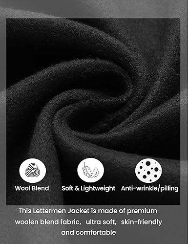 Men's Wool Blend Varsity Jacket Stand Collar Bomber with Embroidered Letters Canvas Lightweight Winter Baseball Coat