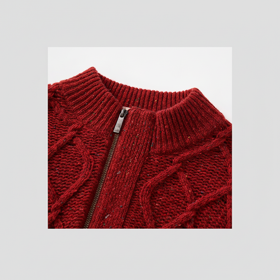 Cable Knit Sweater With Zipper