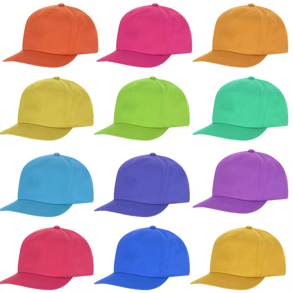 Logo position:brim/visor, front panel, Left panel, Right Panel, back curved part