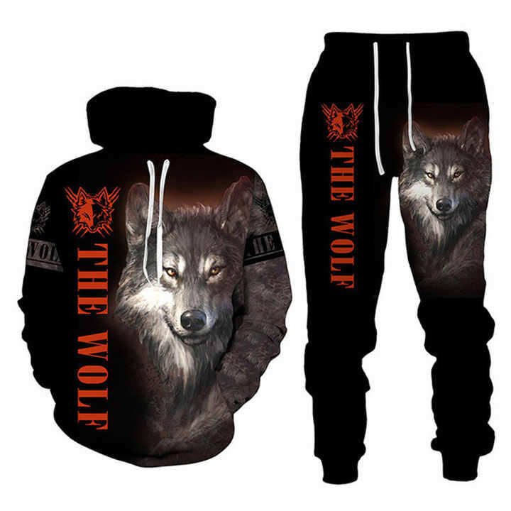 Ensemble 2 pièces pour homme avec capuche, survêtement personnalisé à imprimé loup, pantalon cargo, respirant, unisexe, ensembles de jogging sportifs