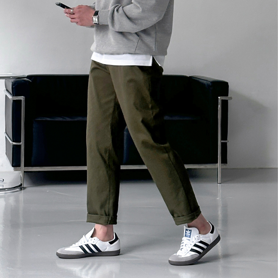 Men's pants Korean Style Straight Fit Casual Pants Mens Unisex 4Way Stretch Cotton Daily Trousers Streetwear Basic Bottoms H4006