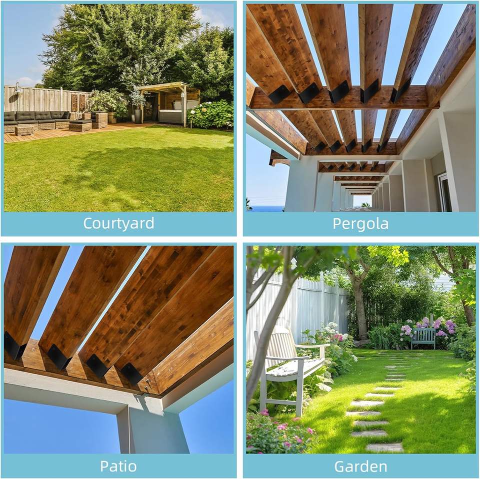 Pergola connecter support, Base de poteau pergola, Base du poteau 4*6, Support de pergola à plate-forme surélevée 4*4, Revêtement: Dacromet + peinture électrophorétique, ANTI-RUS, 2 Bottes 2 Boulons pour Bois, 2 4-Way Extender Supports, Supports d'extension d'angle à 3 voiesStructure