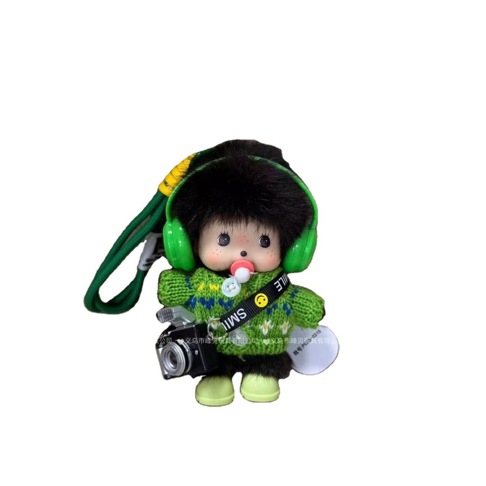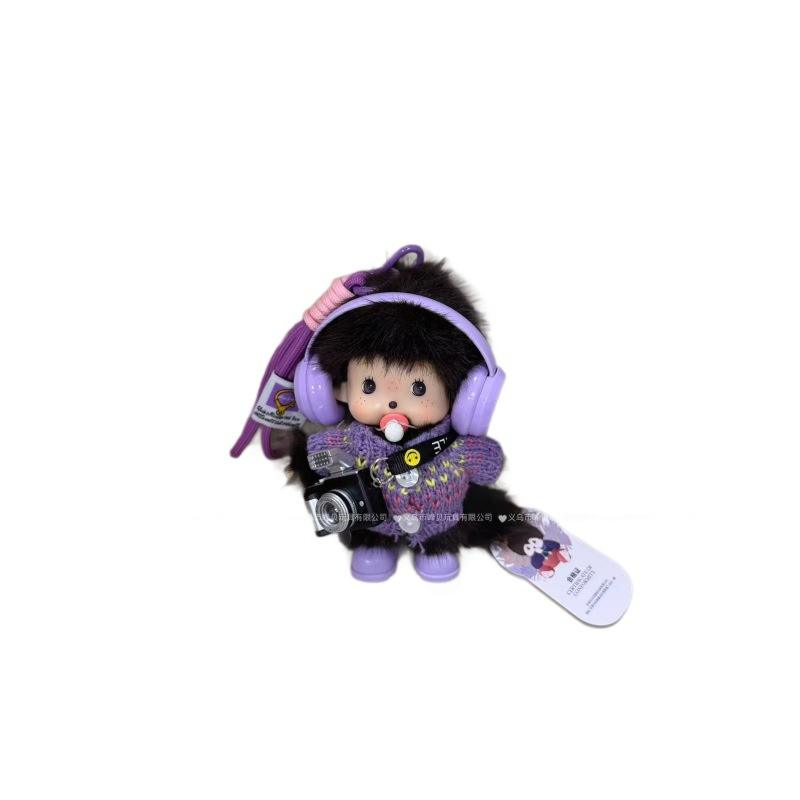 Porte-clés en peluche Mengqiqi - Accessoire de sac à main avec tenue mignonne interchangeable multi-style, peluche lumineuse avec appareil photo Munchi