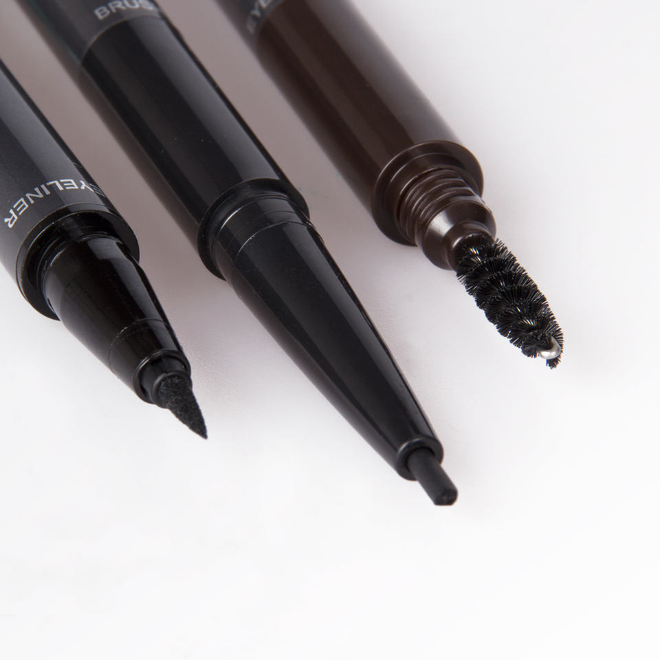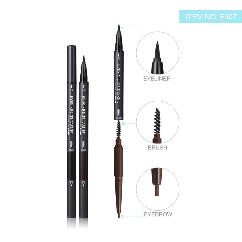 Eyeliner multifonctionnel à double tête + crayon à sourcils + pinceau