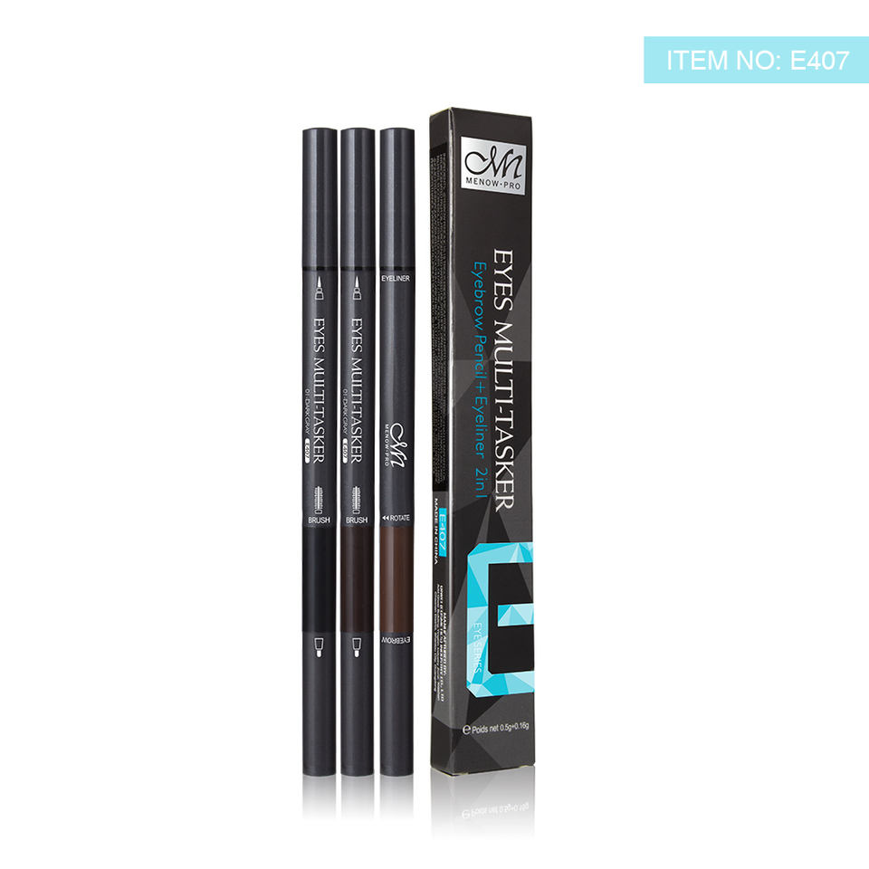 Menow E407 OEM/ODM Marque Privée Crayon Double Tête Imperméable Multifonctionnel pour Eyeliner + Sourcils + Brosse Cosmétiques de Beauté pour les Yeux