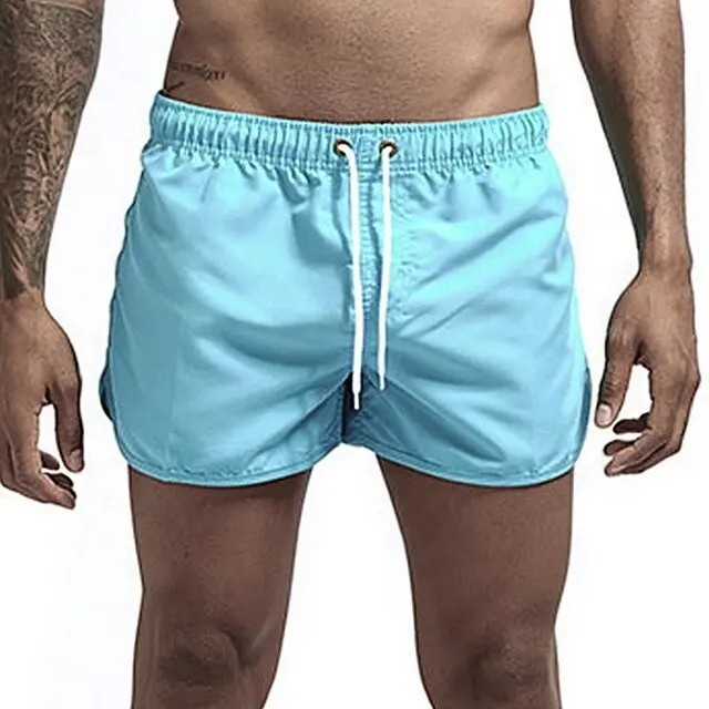 Short en toile polyester 100% pour hommes, coupe confortable avec doublure en maille douce, taille sûre, motif solide, style décontracté pour nager