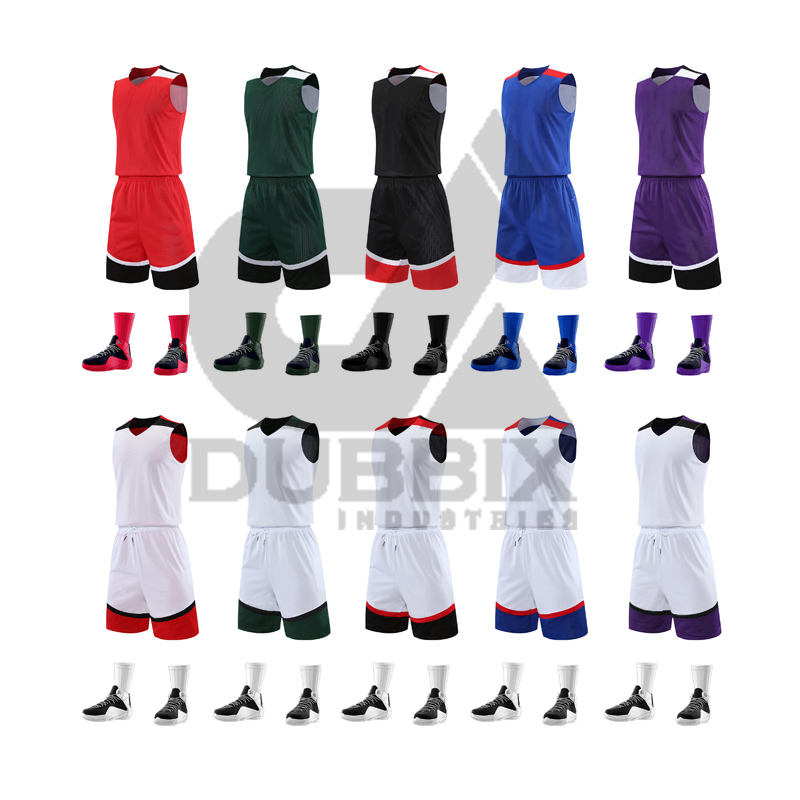 Maillot de basket-ball réversible pour homme 100% polyester personnalisable Ensemble d'uniformes d'entraînement respirant personnalisé pour l'été XS personnalisé