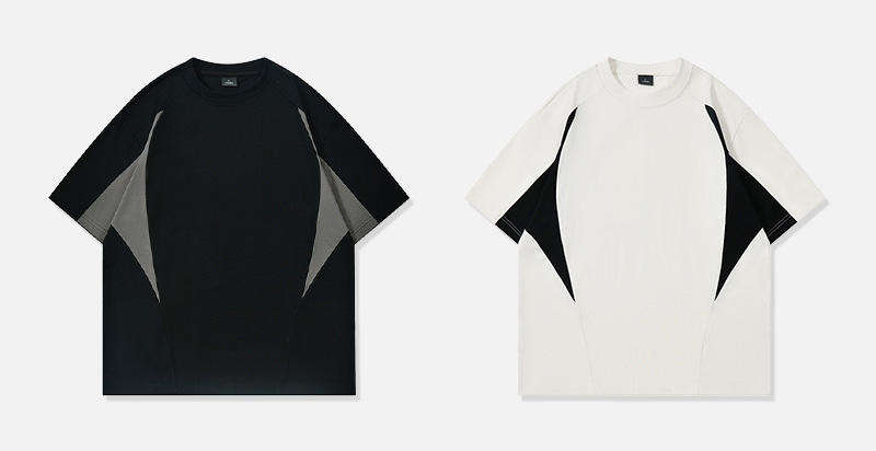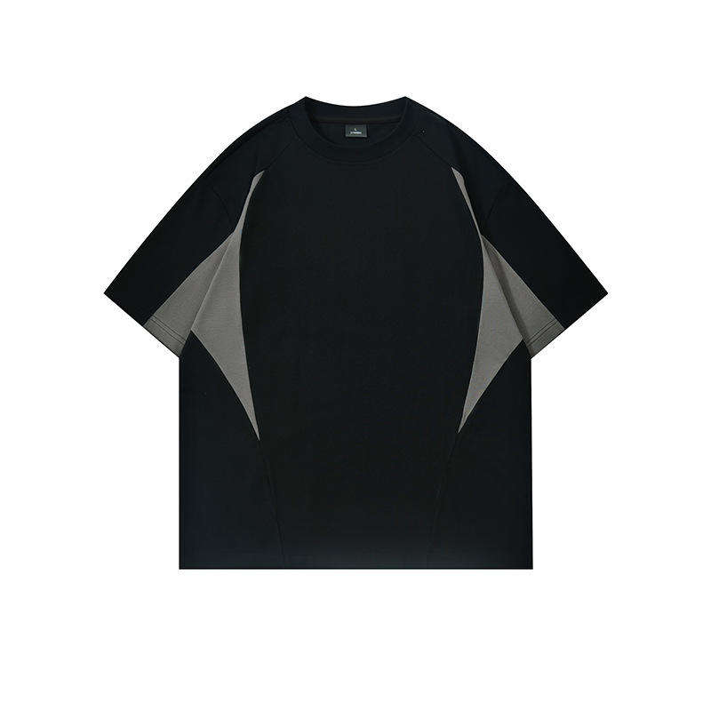 T-shirt de basket-ball à panneaux de couleur 220GSM pour hommes T-shirt décontracté à épaules tombantes Streetwear