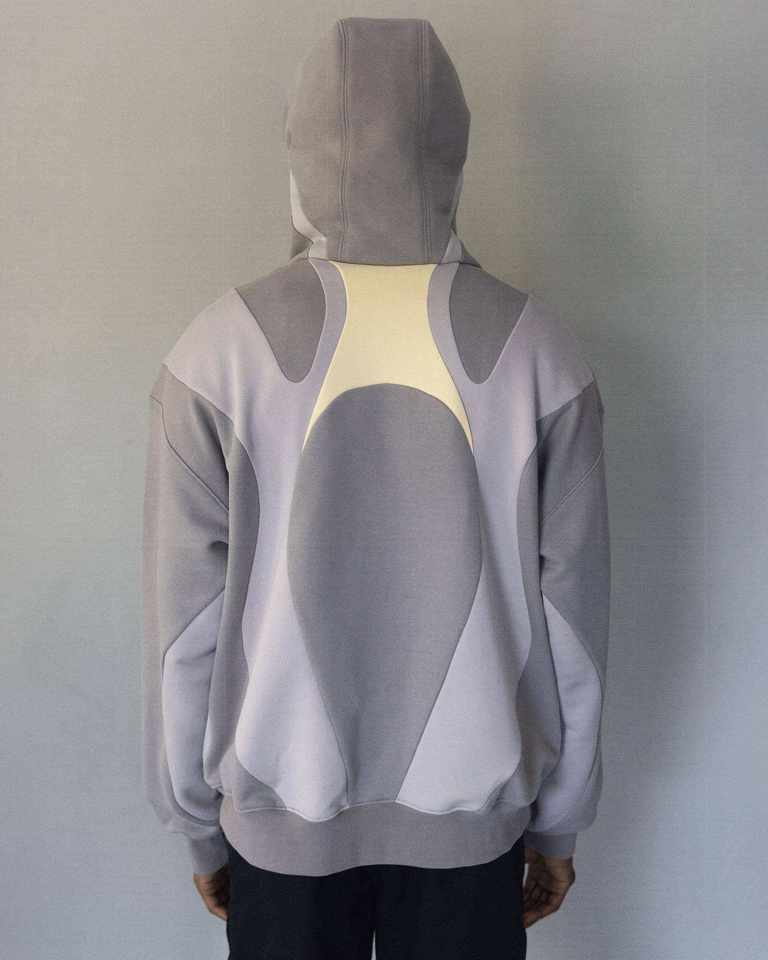 Sweat à capuche zippé pour homme avec design en panneaux 3D | Streetwear futuriste d'hiver | Sweat-shirt décontracté bicolore 100% coton Logo personnalisé