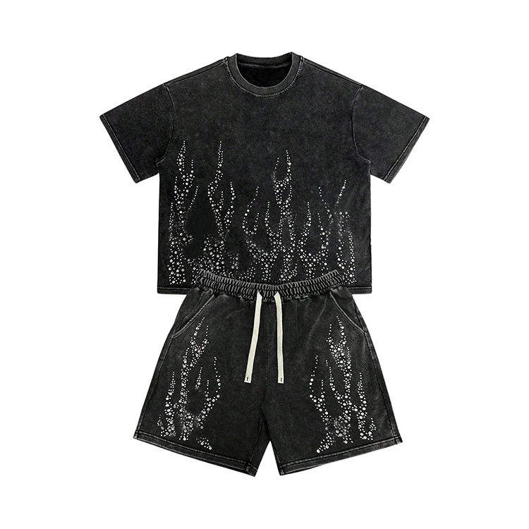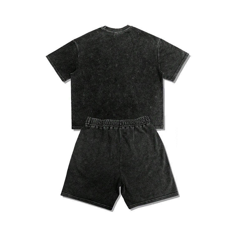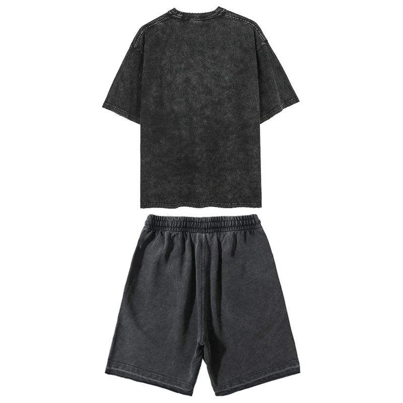 Ensemble deux pièces homme délavé à l'acide, t-shirt et short, coupe oversize, coton épais, logo personnalisé, collection streetwear, respirant