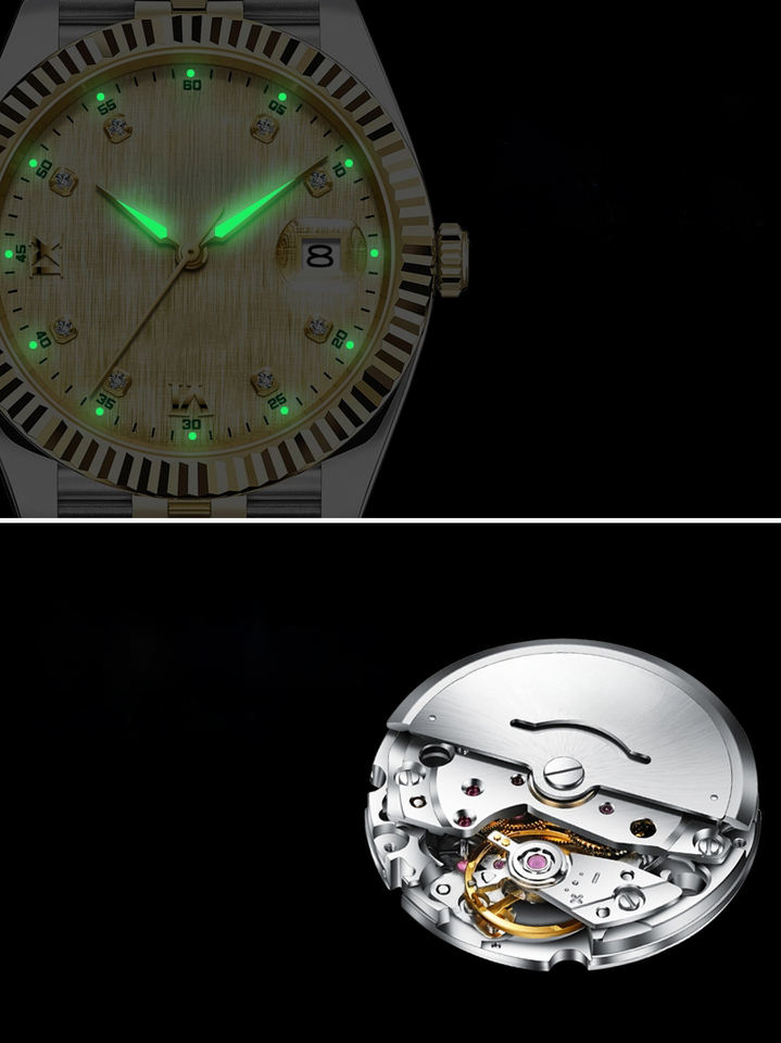 Montre mécanique automatique pour homme avec éclairage nocturne pour les affaires et résistance à l'eau