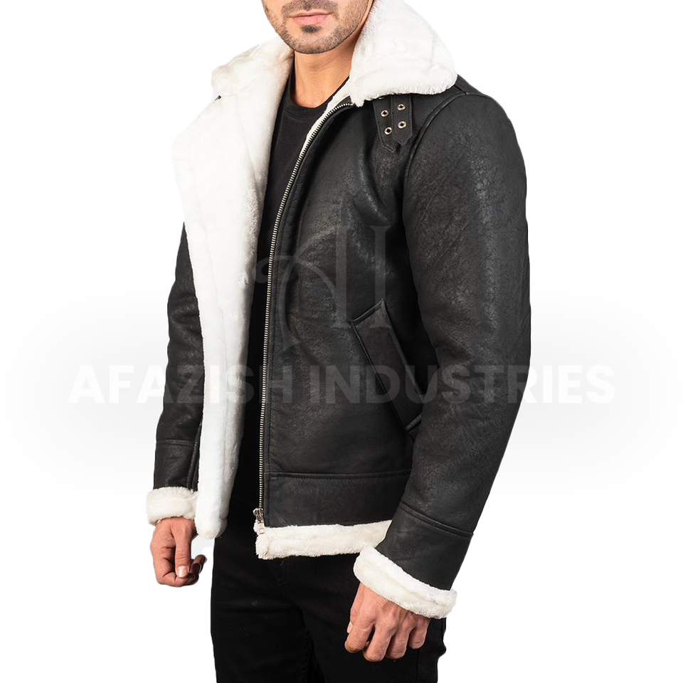 Manteau d'aviateur en peau de mouton pour homme, manteau de bombardier en fourrure, veste en cuir pour homme, vol, remplissage chaud, hiver
