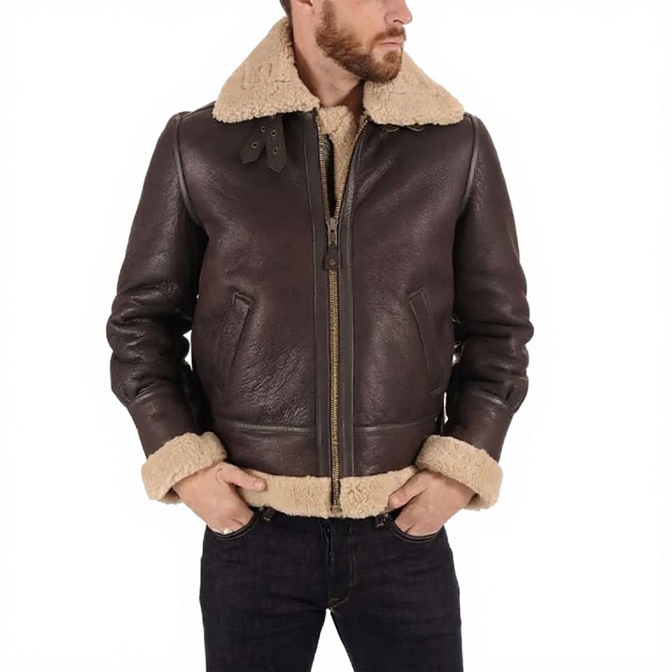 Veste en cuir pour homme B3 Shearling Flying, veste aviateur en cuir d'agneau, veste bomber en fourrure SherpA, veste en cuir véritable, veste décontractée