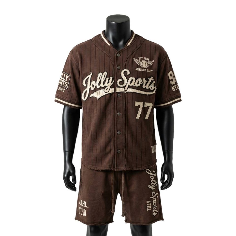 Ensemble de short de baseball pour homme, 220 GSM, polyester premium, rayé marron, ensemble de maillot de sport, broderie personnalisée du logo, ensemble de short pour homme