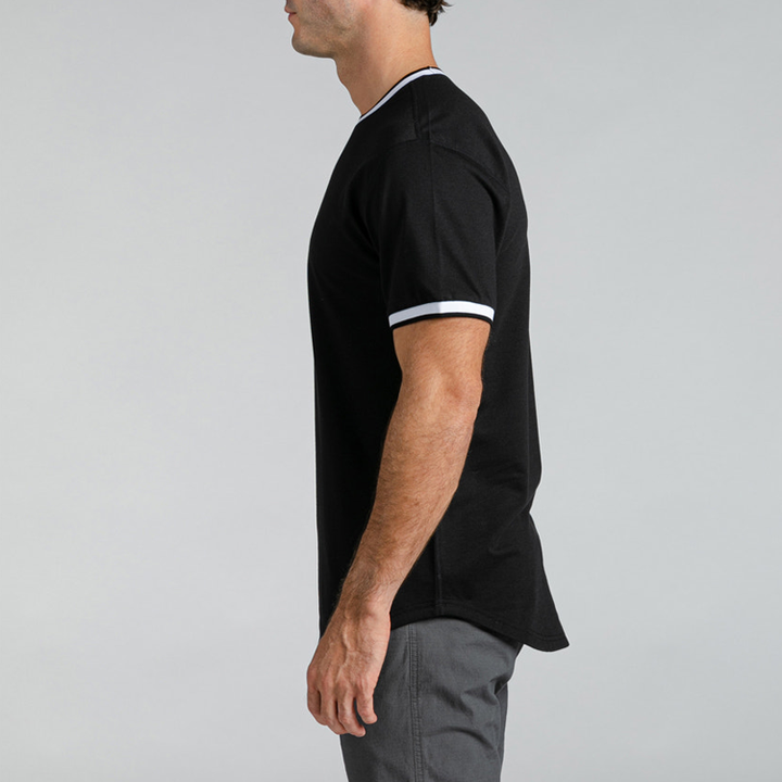 T-shirt Ringer pour homme en coton 100% noir, imprimé sur mesure, col rond, manches courtes, séchage rapide, streetwear décontracté