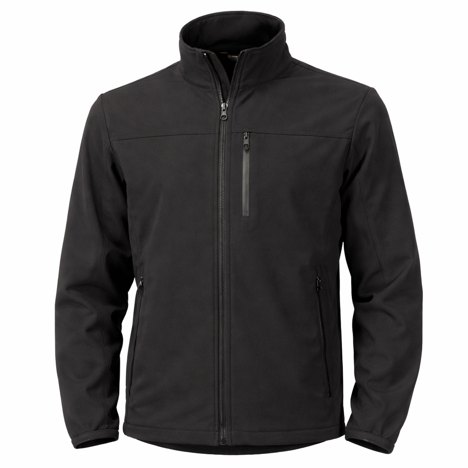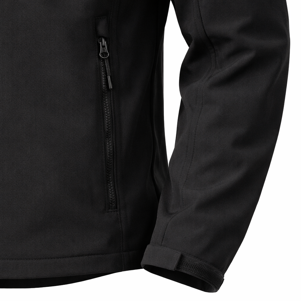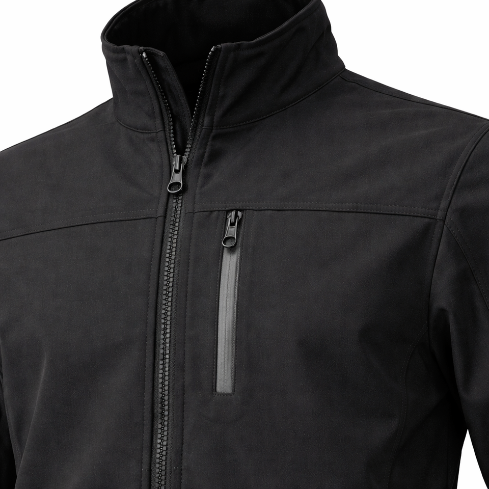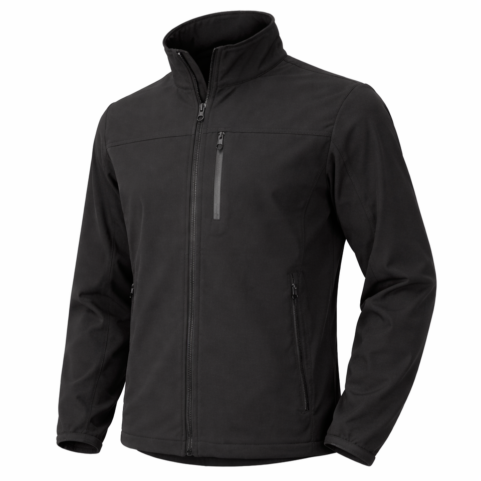 Veste softshell noire pour homme, fermeture éclair intégrale, coupe-vent, résistante à l'eau, vêtements de travail d'extérieur, veste softshell avec poche zippée sur la poitrine