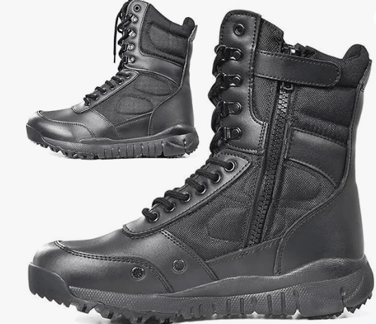 Bottes tactiques noires pour hommes, fermeture éclair latérale, chaussures de randonnée et de travail en plein air