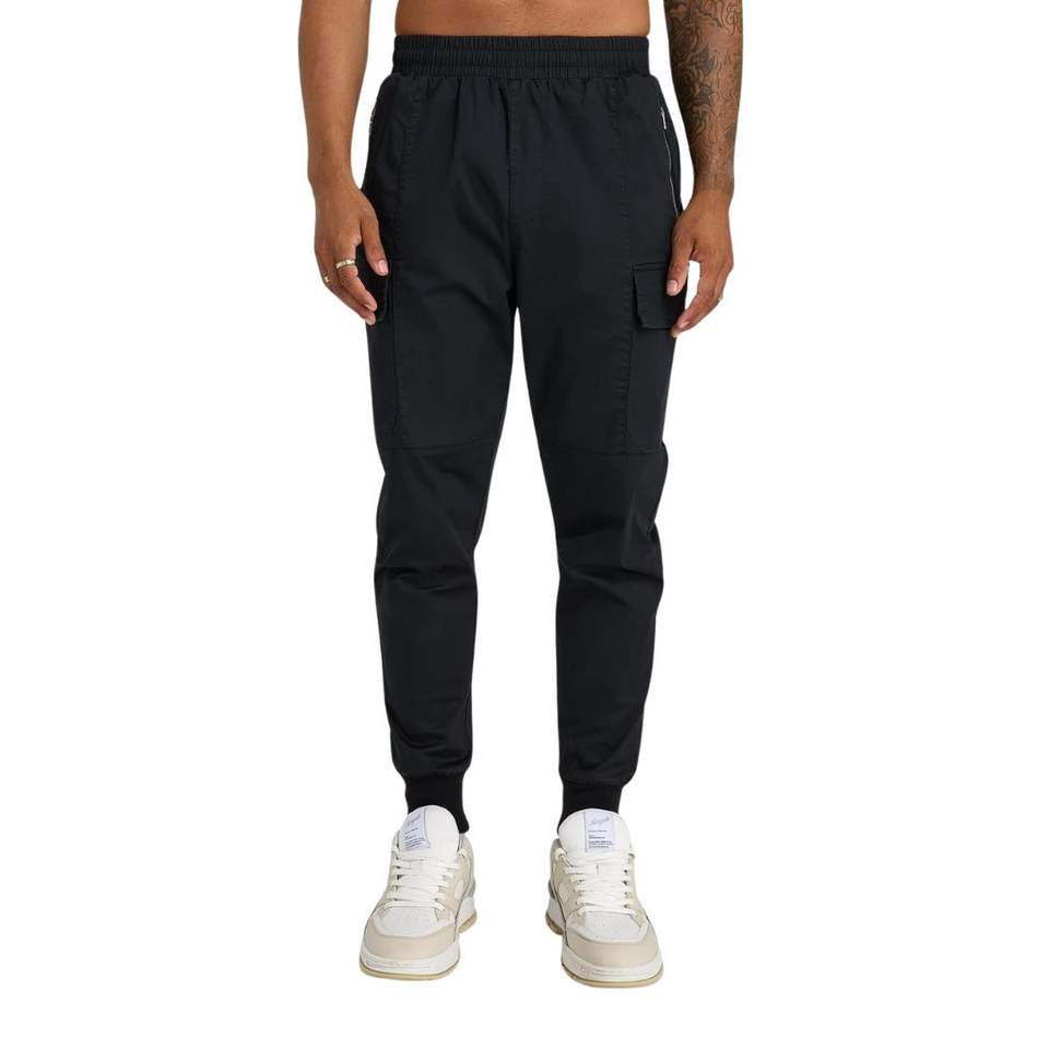 Mens Black Washed Custom Jogger Pants Tapered Fit Elastic Waist Brushed Metal Details Storage Functionality 100% Cotton Casual