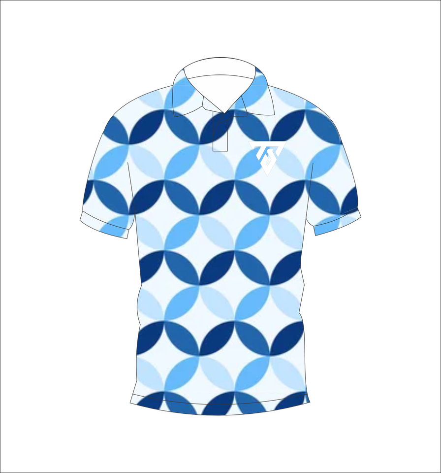 Polo pour homme bleu à motif géométrique ondulé, sublimation personnalisée, manches courtes, été, décontracté, respirant, léger, pour le golf