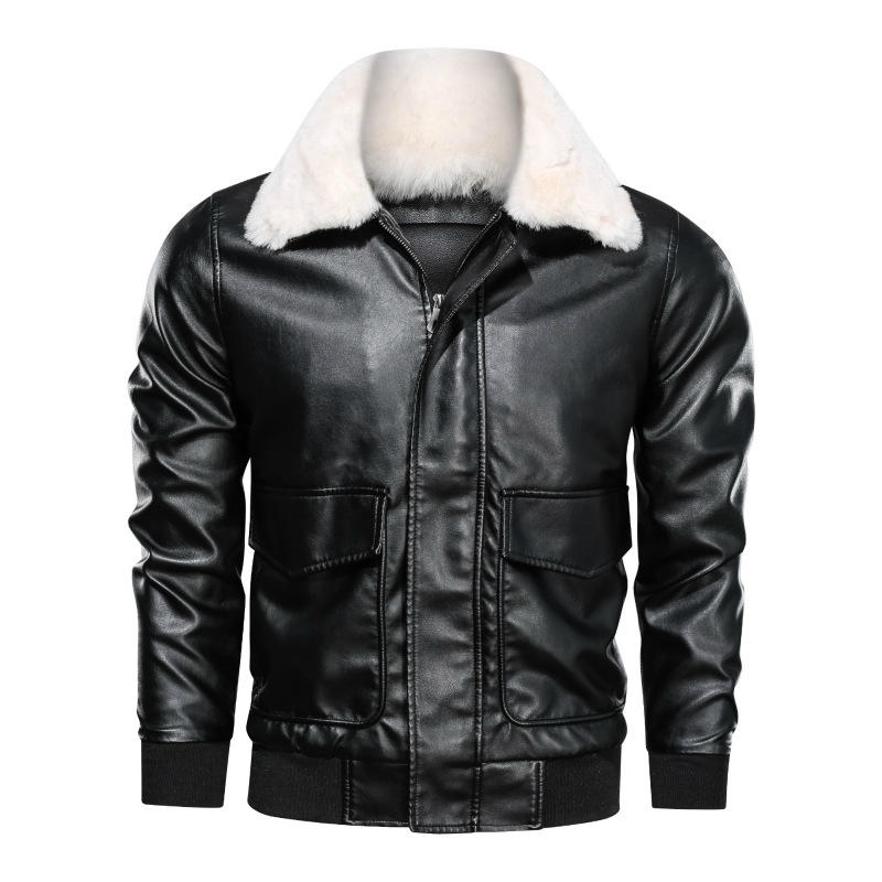 Blouson bombardier pour hommes en cuir véritable col amovible en fourrure de mouton Streetwear décontracté veste de mode vintage vente en gros OEM