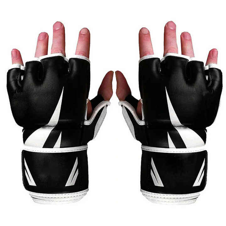 Gants de boxe MMA pour hommes, en cuir de vachette, pour l'entraînement, gants de boxe MMA à demi-doigts