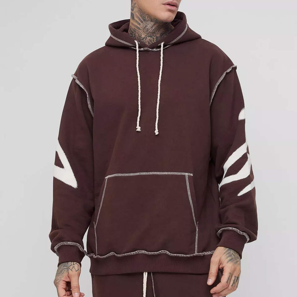 Ensemble de survêtement décontracté pour homme, grande taille, marron uni, en coton/polyester léger, avec sweat à capuche et pantalon de jogging