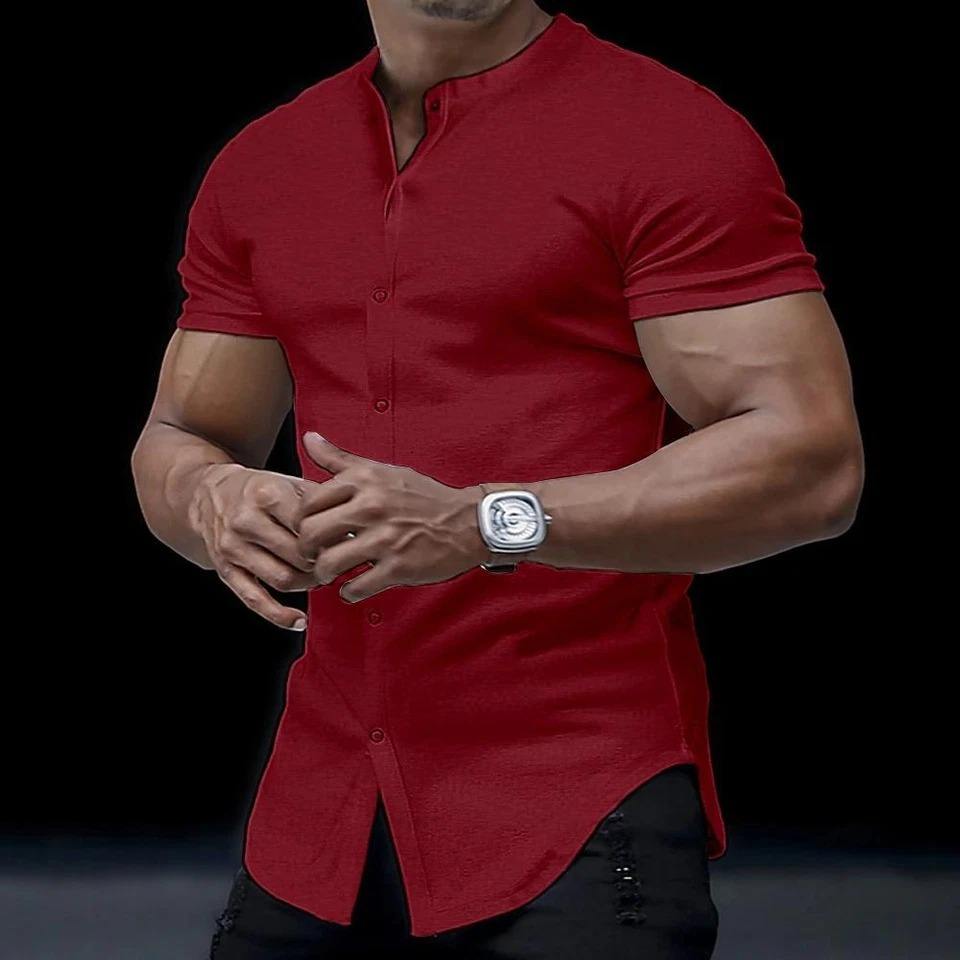 Hommes bouton à manches courtes chemises solides décontracté Muscle Slim Fit hauts chemises de vacances personnalisé soie/coton printemps chemises MS-TS-237