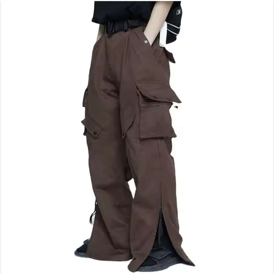 Pantalon Cargo Délavé Vintage pour Homme avec Poches Latérales Fashion Street Wear Pantalon Décontracté Brodé à Taille Élastique pour Homme