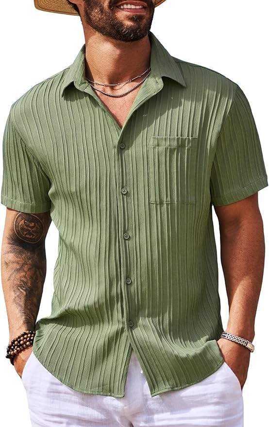 Mens Casual Button Down Short Sleeve Shirt Summer Beach Dress Shirt Lightweight Textured Daily Wear