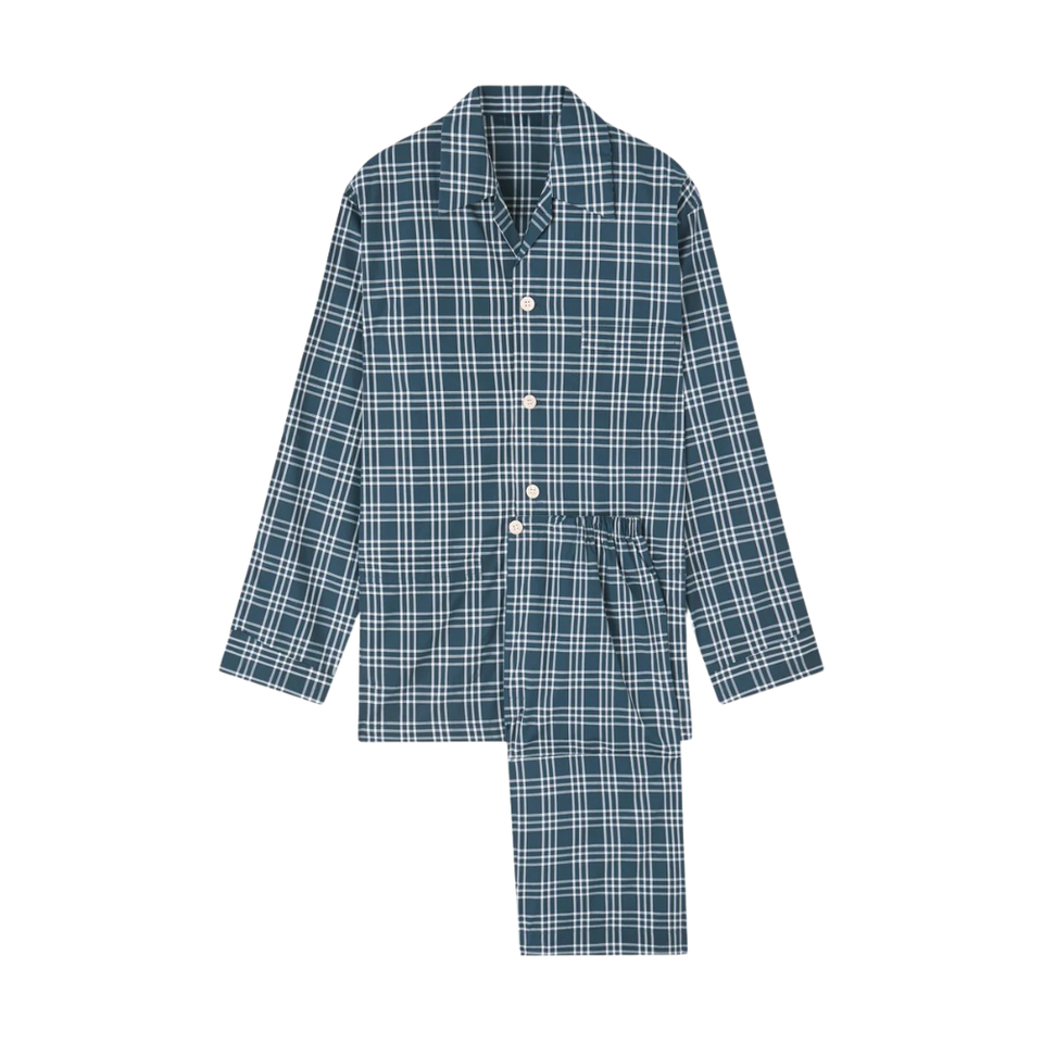 Ensemble de pyjamas classiques pour hommes, manches longues, vêtements de nuit de qualité supérieure, 100% coton, vente en gros, décontracté, rayé, séchage rapide, bleu français