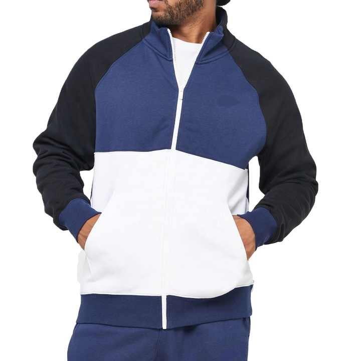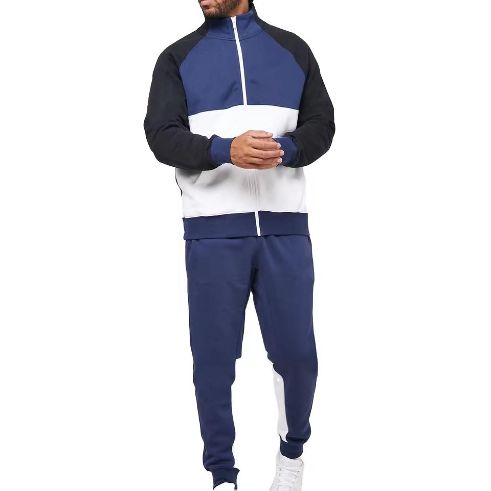 Survêtement à blocs de couleurs pour hommes veste et pantalon à fermeture éclair complète ensemble deux pièces vêtements de sport athlétiques pour jogging et gym