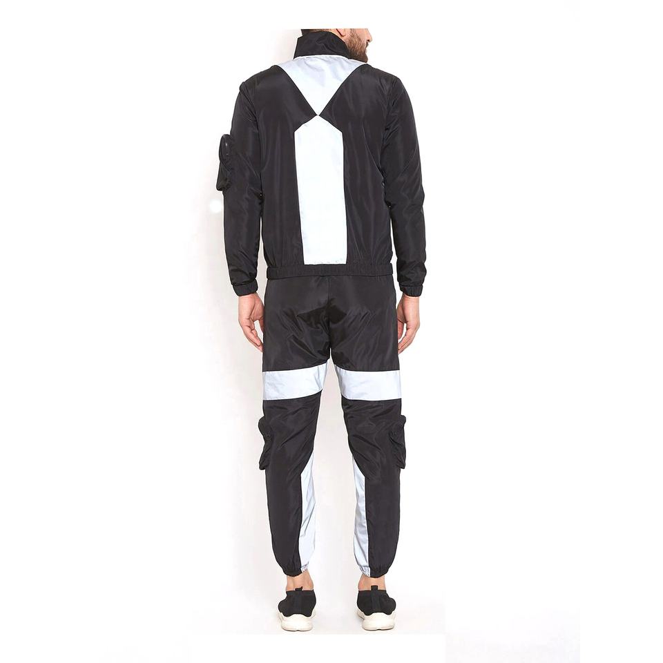 Survêtement combiné léger à vêtements de fitness en patchwork de couleurs contrastées pour hommes avec poches baggy à l'avant Panneaux réfléchissants